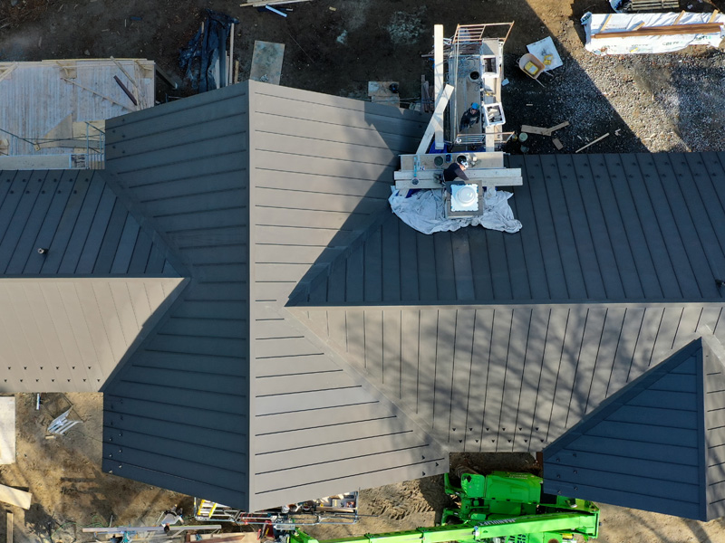 Pour cette maison contemporaine, nous avons installé une toiture métallique anthracite offrant à la fois élégance et durabilité.